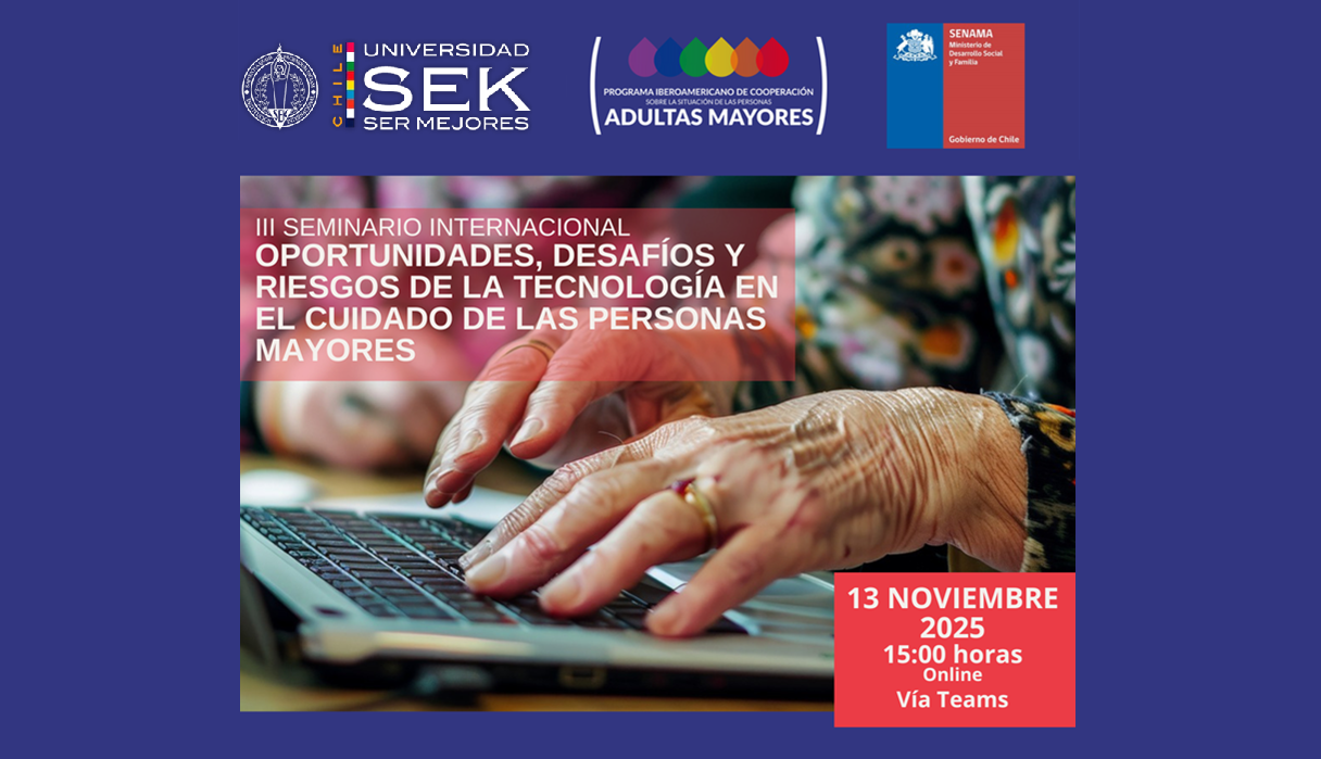 En el marco del Programa Iberoamericano de Cooperación sobre la Situación de las Personas Adultas Mayores (PICSPAM), el Servicio Nacional del Adulto Mayor (SENAMA) y la Universidad Sek (USEK) invitan a participar de esta propuesta formativa virtual que se realizará el día el 13 de noviembre a las 15.00 horas (Chile).