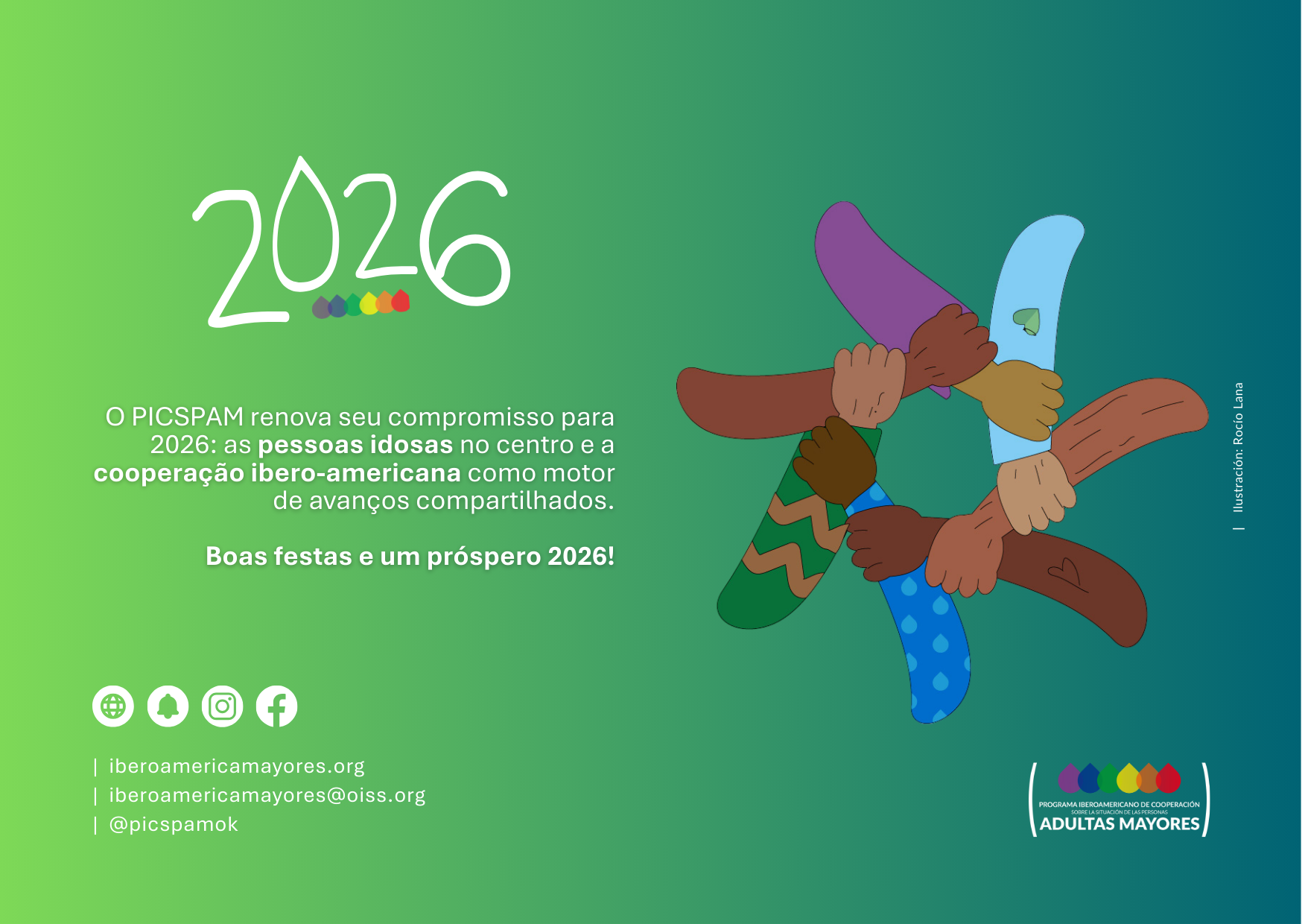 Nos acercamos al final de 2025 y desde el Programa Iberoamericano de Cooperación sobre la Situación de las Personas Adultas Mayores (PICSPAM) deseamos brindar un cálido y fraternal saludo a toda la comunidad regional, a los Estados miembros, instituciones y organismos que trabajan para y junto a las personas mayores.