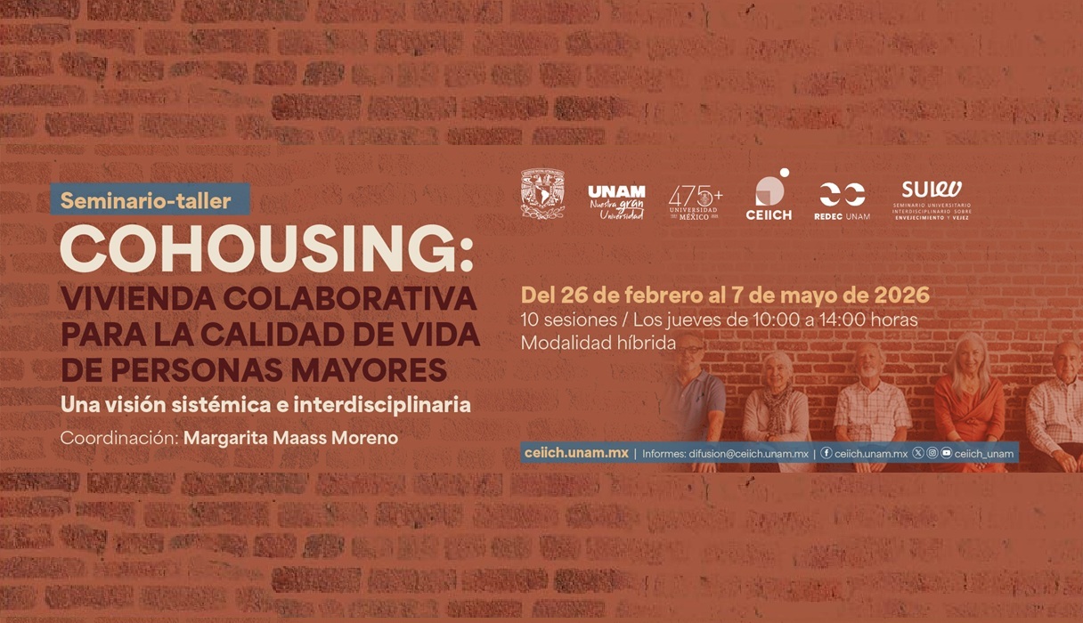 El Centro de Investigaciones Interdisciplinarias en Ciencias y Humanidades (CEIICH) de la UNAM, en el marco de su Programa de Investigación Cibercultur@ y Desarrollo de Comunidades de Conocimiento y en articulación con el Seminario Universitario Interdisciplinario sobre Envejecimiento y Vejez (SUIEV), organiza este seminario-taller orientado a analizar el cohousing como modelo alternativo de vivienda para personas mayores.