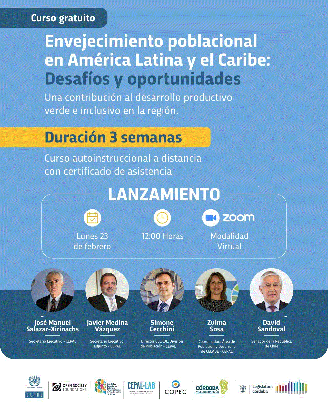 El próximo lunes 23 de febrero, a las 12:00 horas, se presentará el curso virtual titulado «Envejecimiento poblacional en América Latina y el Caribe: oportunidades y desafíos». Esta iniciativa surge en un momento en el que la transición demográfica exige acciones, estructuras estatales y políticas públicas que den respuesta a las demandas de una población con una esperanza de vida creciente y una baja tasa de natalidad.