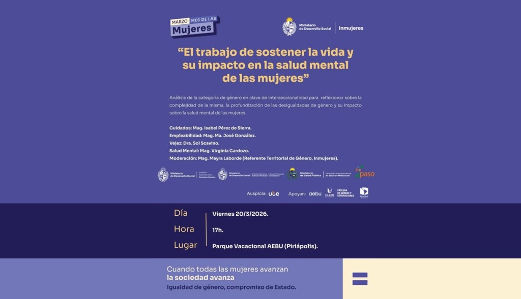 En el marco del Mes de las Mujeres 2026, el Instituto Nacional de las Personas Mayores (INMAYORES), del Ministerio de Desarrollo Social de Uruguay, impulsó un espacio de reflexión colectiva sobre las desigualdades de género y su impacto en la salud mental. La actividad puso el foco en los cuidados, la empleabilidad y la vejez, desde una perspectiva interseccional y de derechos.