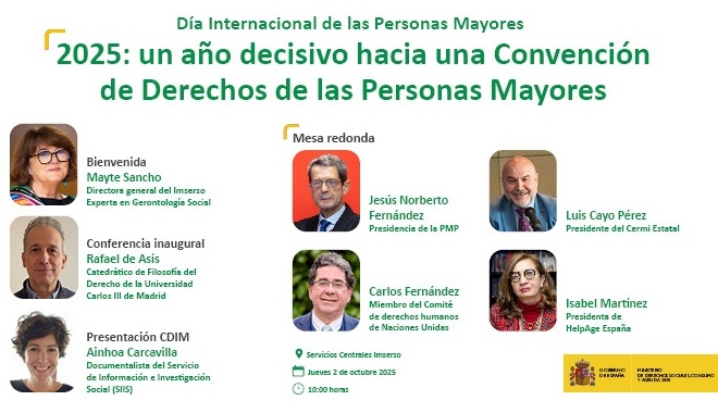 El Instituto de Mayores y Servicios Sociales (IMSERSO) conmemoró la efemérides en un encuentro de debate y análisis centrado en los derechos de las personas mayores. El evento, que tuvo lugar en la sede del organismo en la Avda. Ilustración de Madrid, congregó a destacadas figuras para abordar los desafíos y avances. Fuente: IMSERSO La